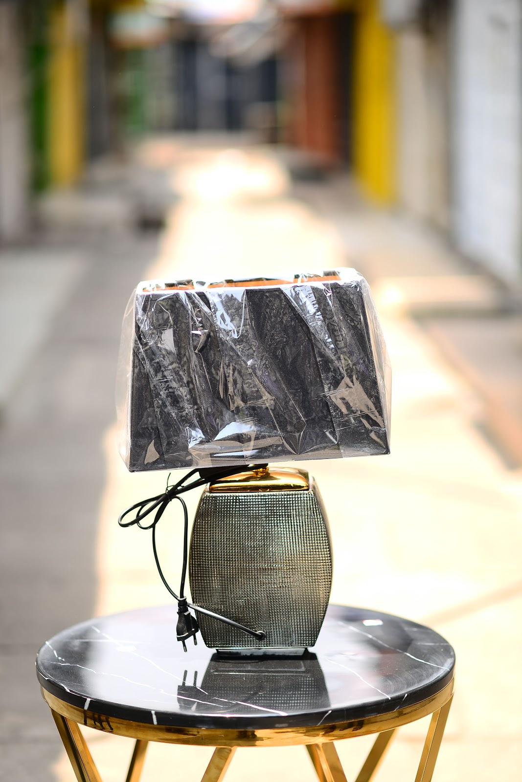 Table Lamp with Box-like Base | Black Square Shade | Ash Base