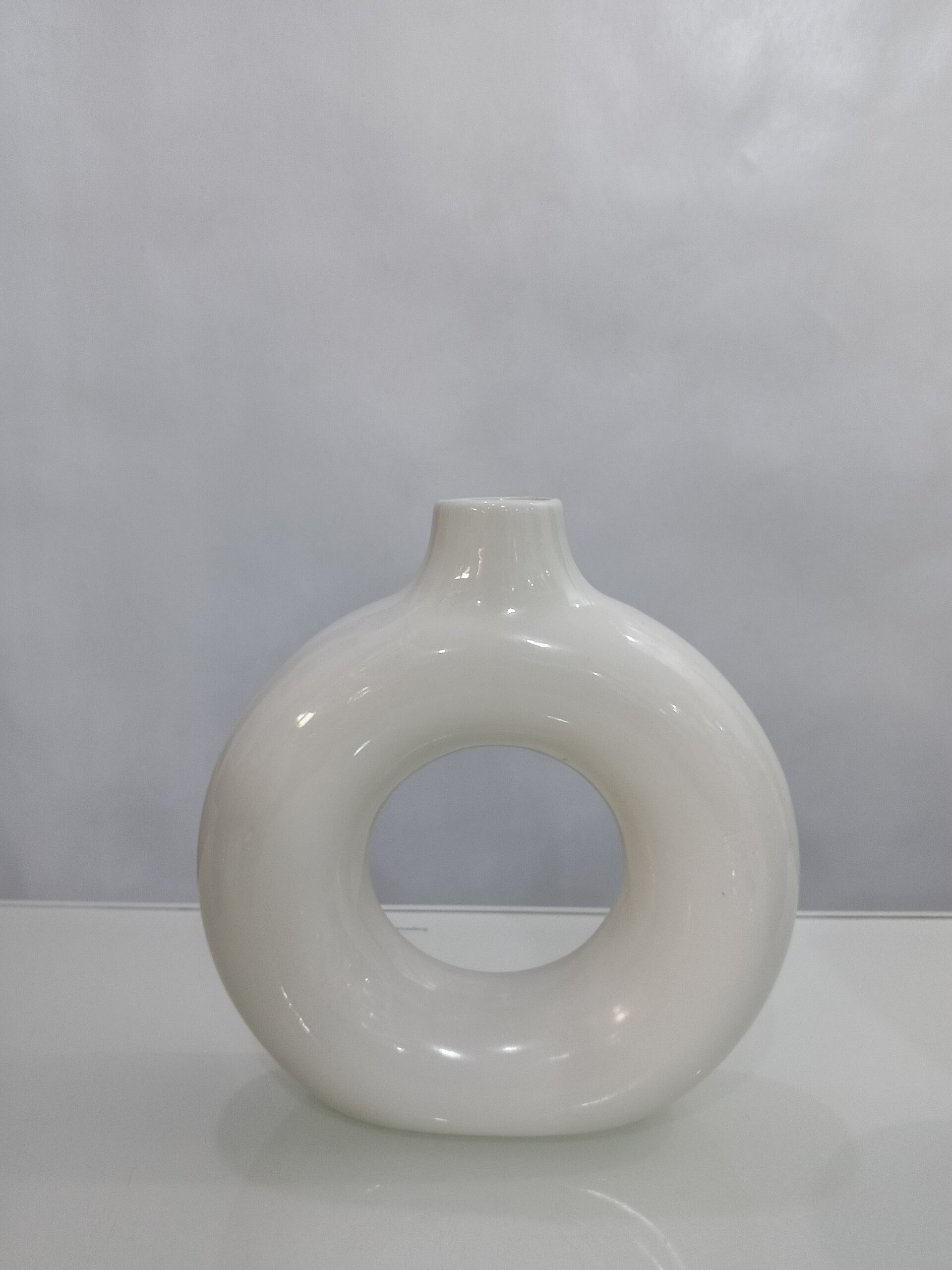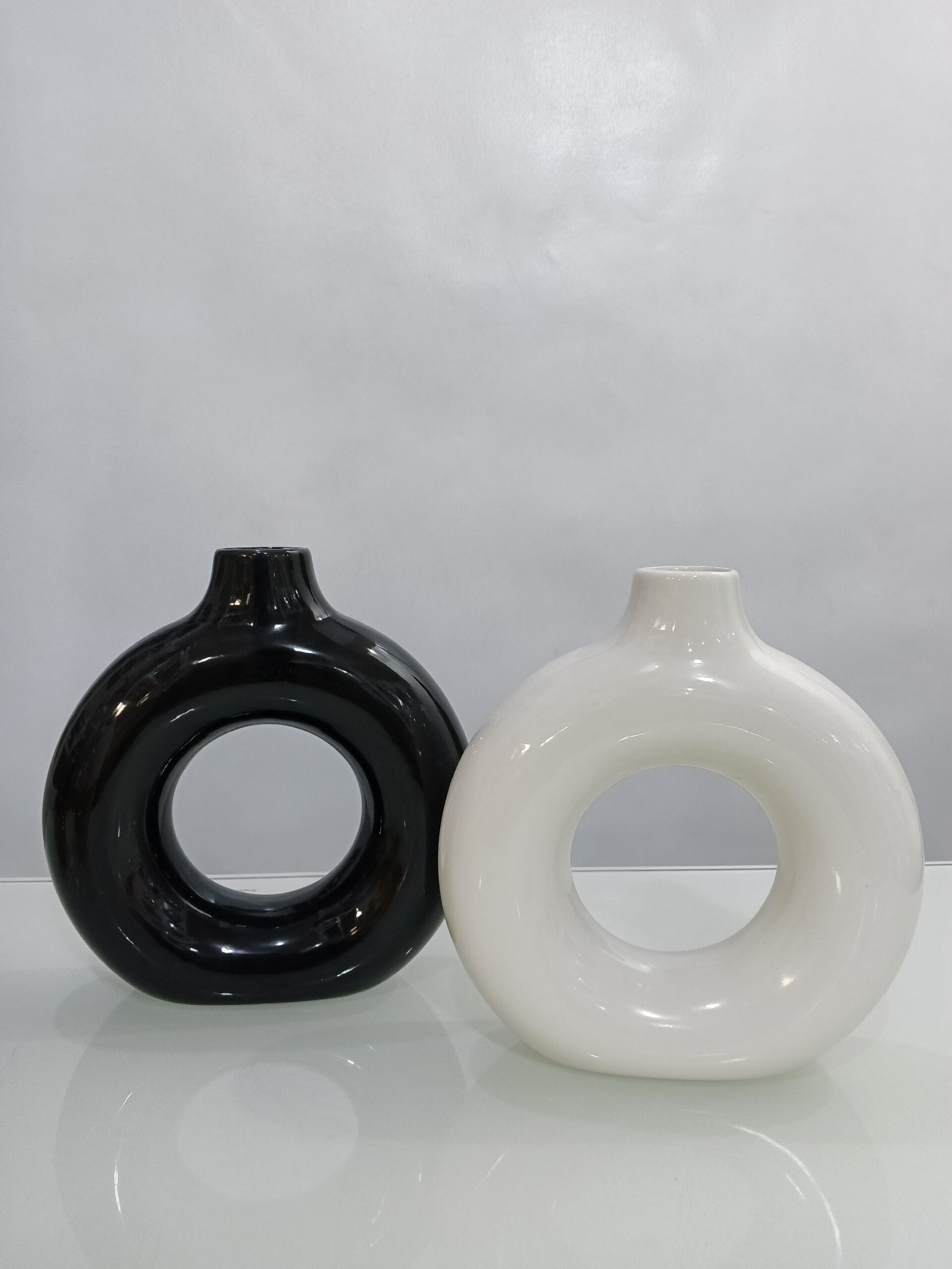The glossy doughnut vase is the perfect blend of modern aesthetics and timeless design. Its unique circular shape and glossy finish make it a statement piece that effortlessly draws attention in any space.
